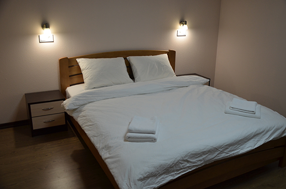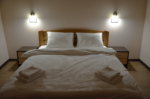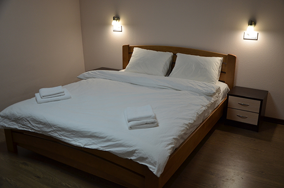 С комфортом та затишком зустріне Вас двомісний номер. Простора кімната, одне двоспальне ліжко з ортопедичним матрацом. Індивідуальне освітлення з розетками, а також, є приліжкові тумби и робочий стіл для тих хто поєднує відпочинок та роботу. Система мікроклімату.
